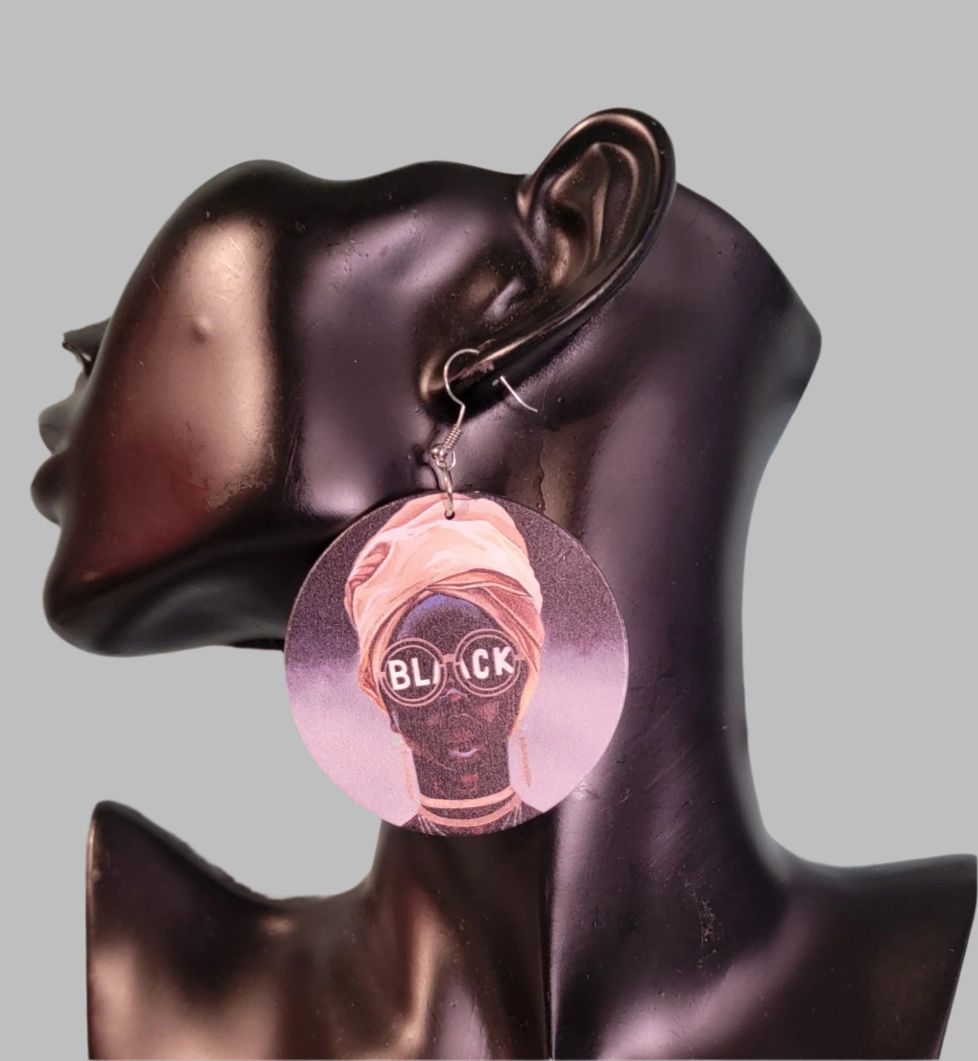 Lady with Glasses that says BLACK, with Gold Headwrap